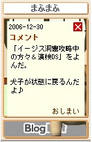 今年も終わりですね。 明日は色々忙しいので、多分今日でお終いかな? 時間があったら更新します(笑) どうも、犬は状態異常におちいっていた模様(笑) まふまふ占い:お友達運不調