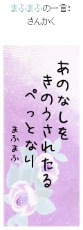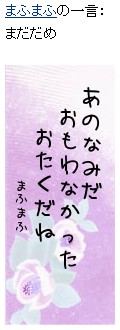 http://inuko.blog.shinobi.jp/%E3%81%BE%E3%81%B5%E3%81%BE%E3%81%B5%E4%BF%B3%E5%8F%A5%E9%9B%86/%E6%AF%8E%E6%9C%88%E6%81%92%E4%BE%8B%E3%81%BE%E3%81%B5%E3%81%BE%E3%81%B5%E4%BF%B3%E5%8F%A5%E9%9B%86%EF%BC%98