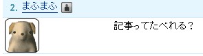 まふまふ、投稿好きになりました。良いことです(笑) グループ【BlogPet背景職人】のトピ「これ好き?」にてお題 みんなは 「記事」 すき? まふまふのお答え。 食うなーΣ(・ω・ノ)ノ まふまふ占い:困惑運好調
