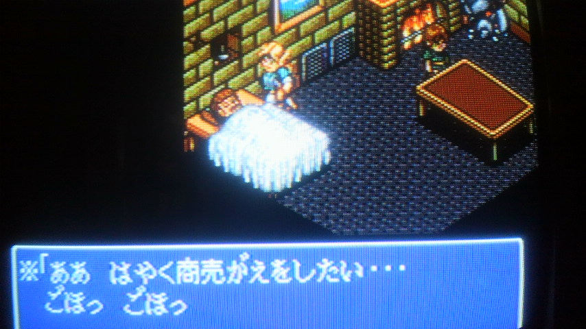 3割4割当たり前~と全然安くない道具屋のそばに,寝込んでいる別の道具屋の主人。